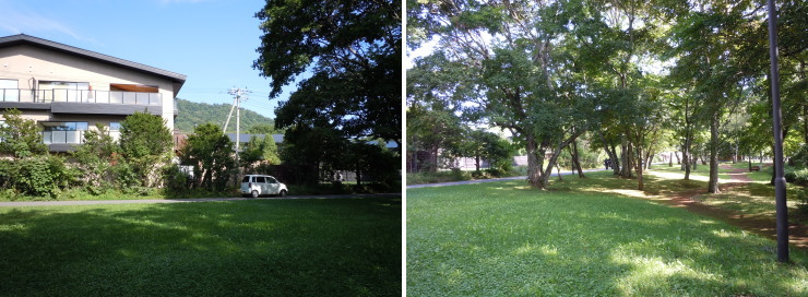 | お店の前は中央広場。ここから支笏湖のほとりへ下りていくことが出来ます。 |