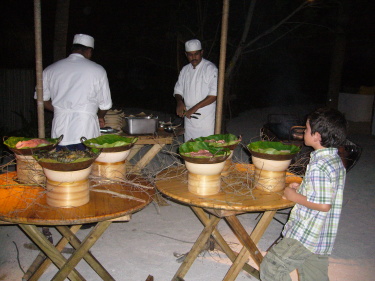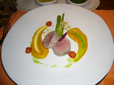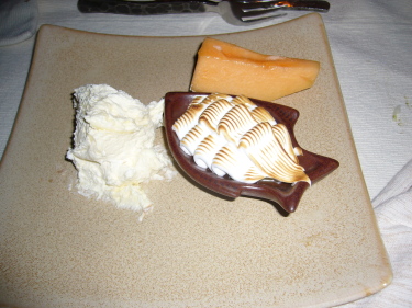 デザートにピスタチオのアイスクリーム。彼はチーズの盛り合わせ。チーズは食べきれなくてヴィラに運んでもらいました。 |