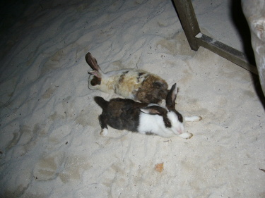 バーベキュー会場そばの茂みでウサギちゃん達は仲良くお休み。 |