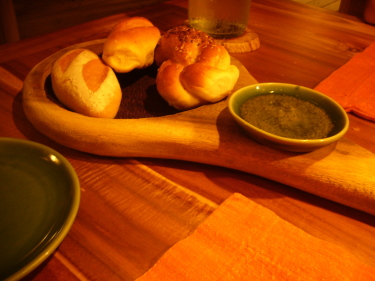 こちらもパンはバスケットにどっさり。ディップとオリーブオイル付き。 |