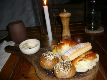 | こちらもパンがつきます。ディップは日替わりのようで、毎日違う味を楽しめました。 |
