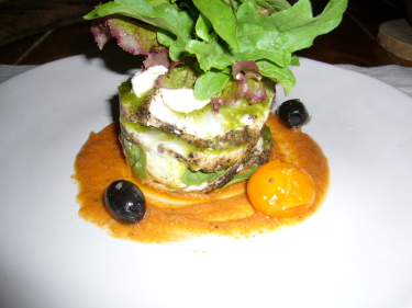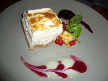 チーズのミルフィーユ、カシューナッツ添え。 |