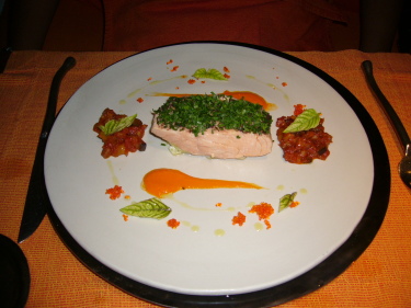 サーモンのソテー。すっごいボリューム。 |