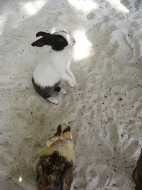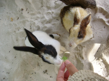 レストラン・エリアのウサちゃんたちとの交流も楽しみのひとつ♪ |