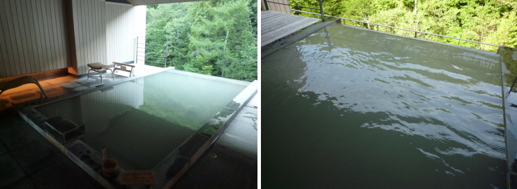 | 湯面に映す緑がとても美しい露天風呂。 |