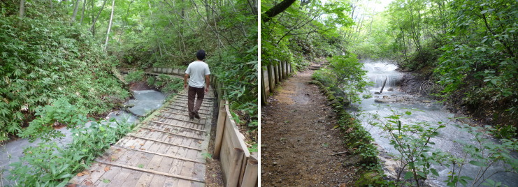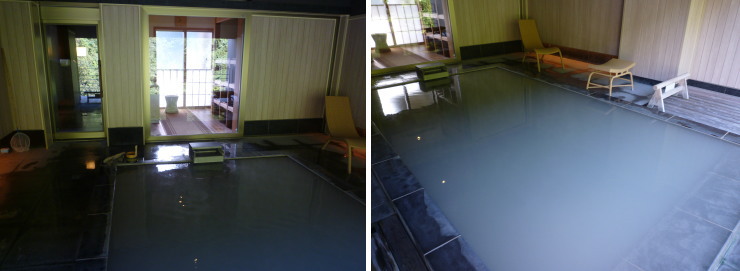 | 男湯は透明な食塩泉で、女湯は濁り湯の鉄泉となっています。 |