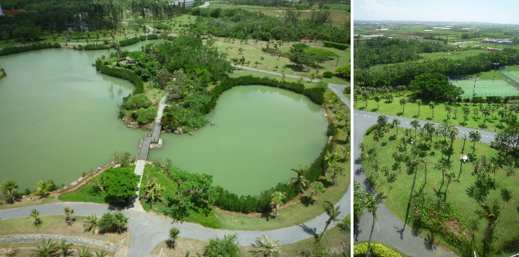 | 海とは反対側の敷地には、大きなラグーンや遊歩道があります。テニスコート、バスケットコート、パターゴルフなども。 |