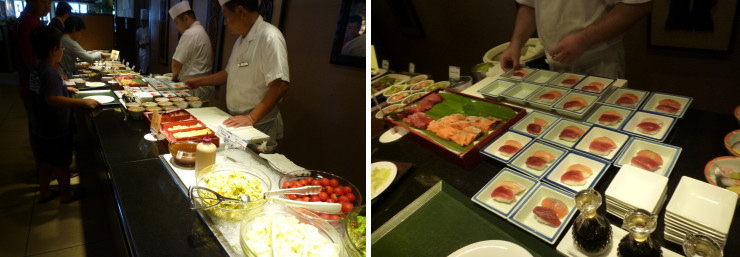 | 8月28日。初日のディナーはホテルのレストラン「やえびし(寿司)」にて。 |
