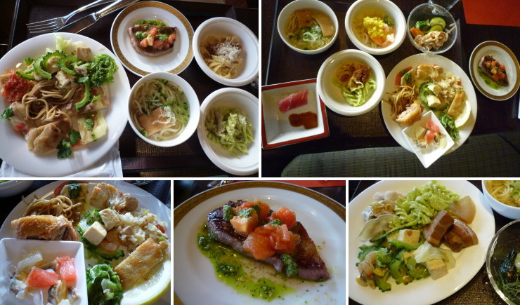 8月28日。チェックイン時にちょうどランチビュッフェ(土日のみ)をやっていたので、宮古島初日のランチはホテルのレストラン「シャングリ・ラ」にて。1人1800円。 |