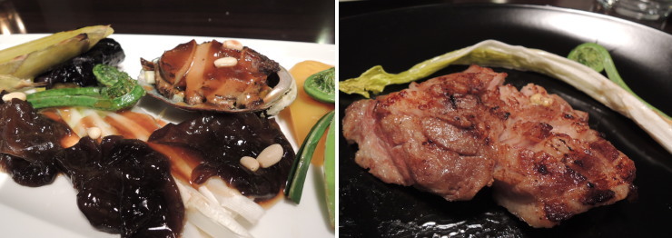 | あわびは小さ目でしたが、豚肉の厚みが2p近くあって、見ただけで戦意消失。完全に舐めてましたね〜、山人の食事量^^; |