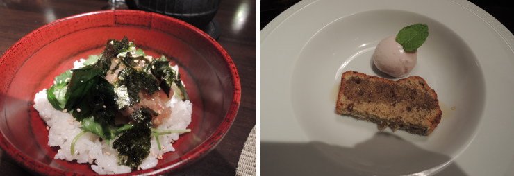 | 「岩魚の茶漬け」「手作りアイス・エゴマケーキ」と続きます。私はもう入らないのでキャンセル( ノД`)。お茶漬けも結構なボリュームでした。 |