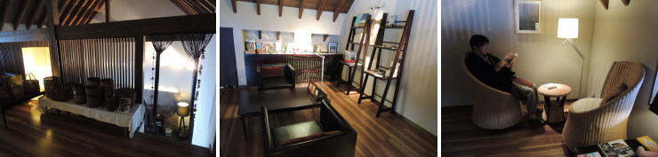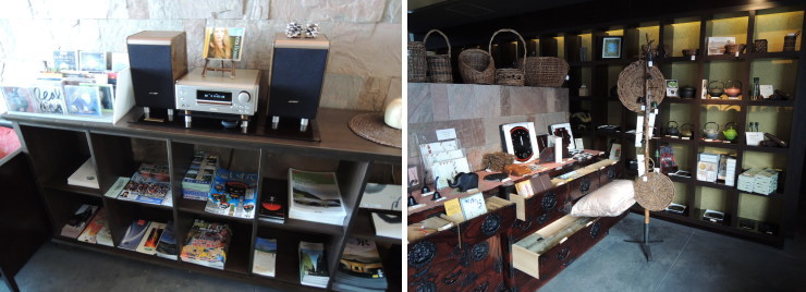| 食事処と貸切露天風呂以外、パブリックなスペースはほとんどありません。フロントにちょっとしたお土産スペースとライブリーがあるくらい。 |
