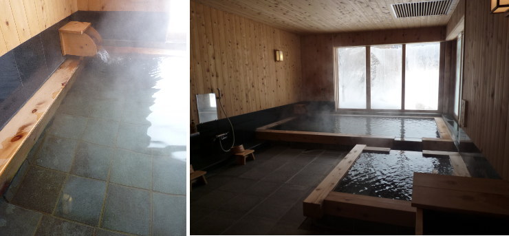| ○貸切風呂その@「播隆の湯」 ここの脱衣所も雪が積もってました(笑) |