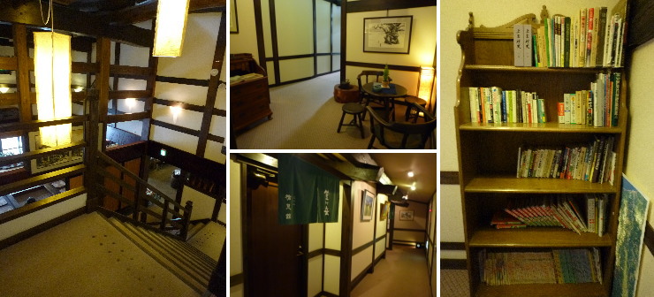 | ●館内 レトロでシック。もっと民宿っぽい感じかと思っていたのですが意外と素敵(笑)。洗練されすぎてないところがグー。「えっ?こんなところに?」って場所にテーブルセットや本棚があります(笑) |