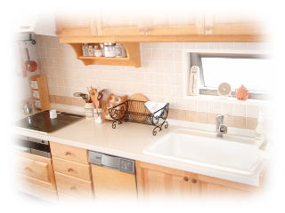 | "Anni's Kitchen"製のカントリーキッチン。 素材はメープル。 |