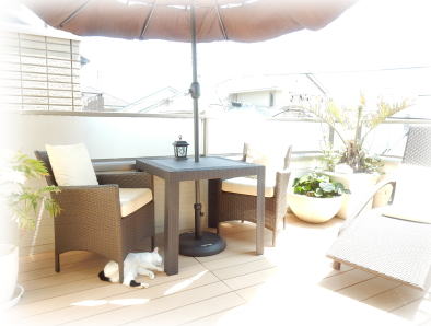 | このアウトドアな空間は、とても贅沢な気分にさせてくれます。 ペット達とのランチ、夜はバーベキューなど大活躍! |
